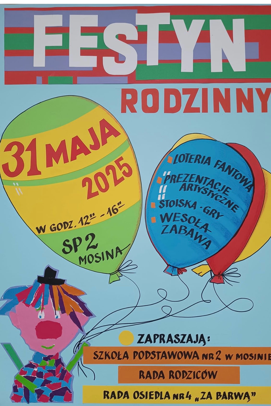 Serdecznie zapraszamy na Festyn Rodzinny, który odbędzie się w Mosinie w Szkole Podstawowej nr 2 w dniu 31 maja 2025r. od godziny 11.00 do 15.00.