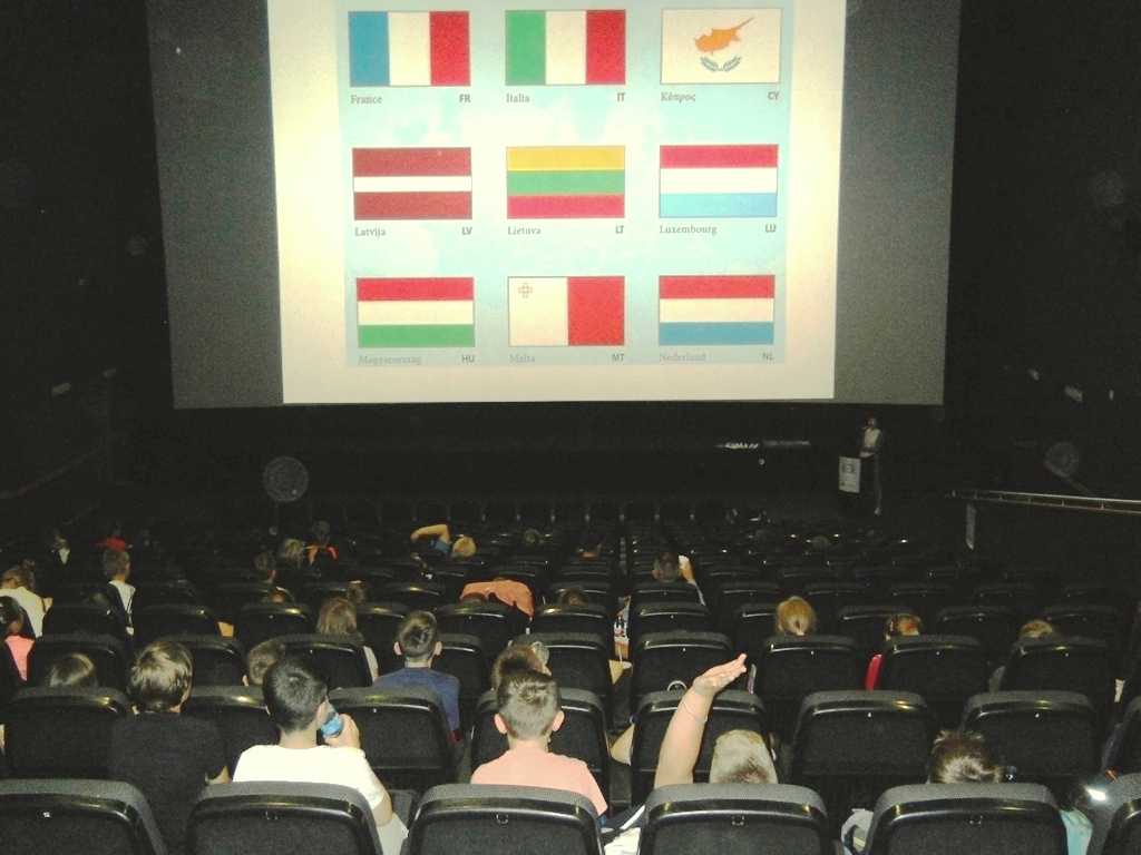 Duży ekran sali kinowej sprawił, iż dzieci z zaciekawieniem przyglądały się prezentacji. Odwiedziliśmy Niemcy, Francję, Holandię, Słowację i wiele innych państw UE.