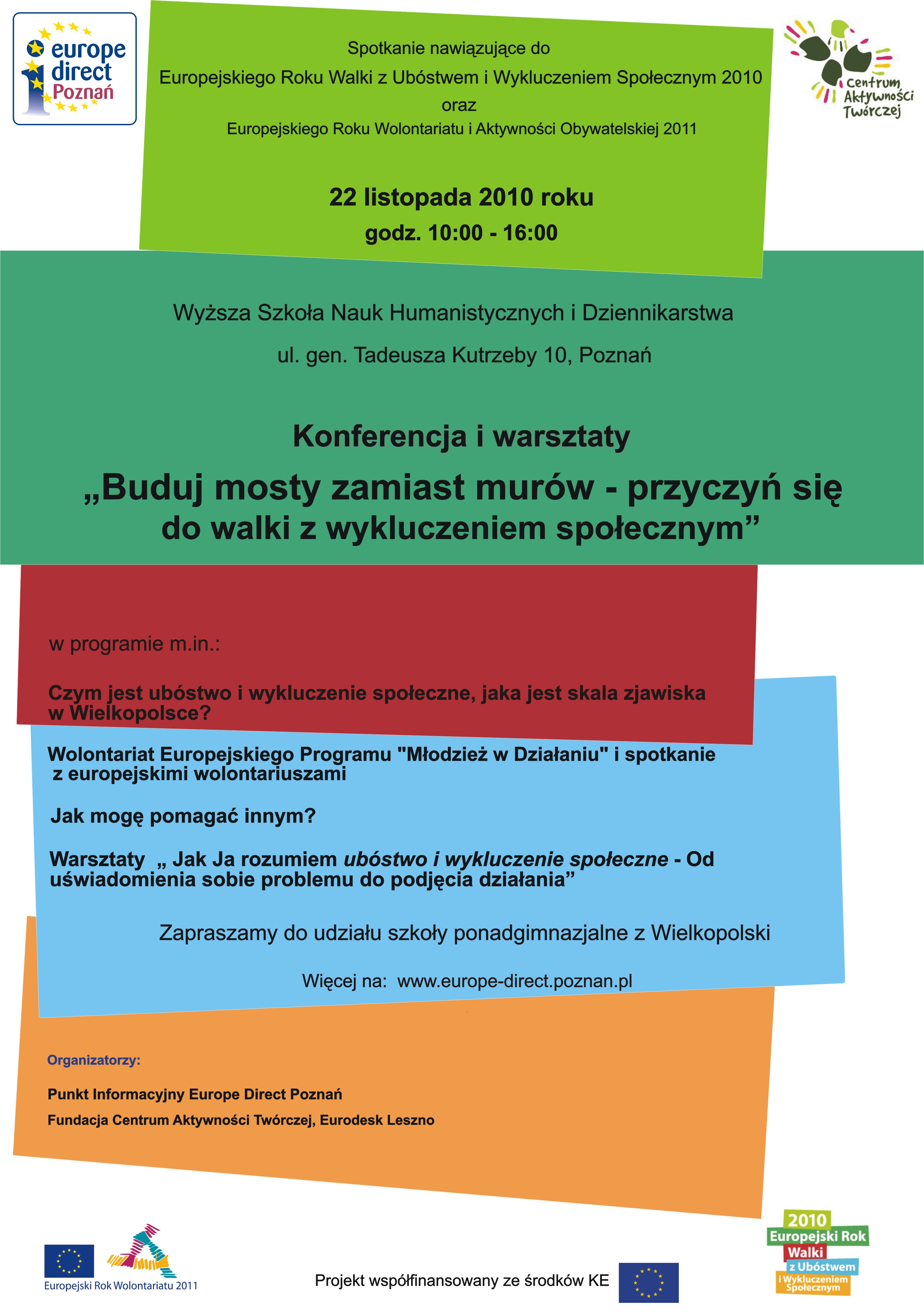 „Buduj mosty zamiast murów - przyczyń się do walki z wykluczeniem społecznym”.